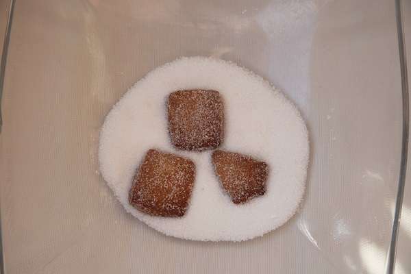 7. По достижении готовности, пока мантекадо не остыли, посыпьте их обычным сахаром и дайте пропитаться.